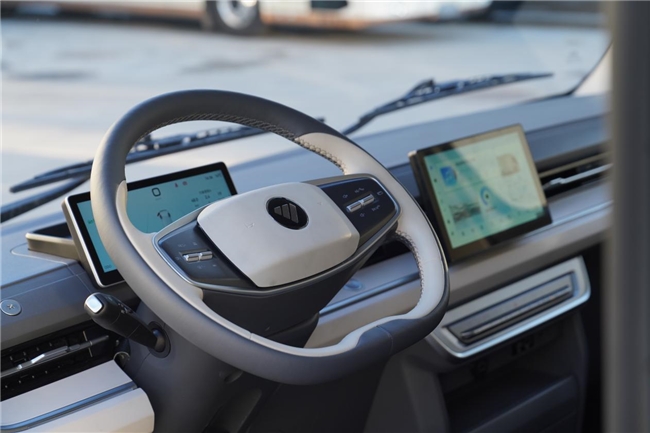 走进驾驶室,12.8英寸中控大屏与全液晶仪表组成的智能座舱成为视觉焦点。系统响应流畅,支持语音控制与双屏联动,更标配了L2级智能驾驶辅助系统,包括车道偏离预警、前碰撞预警与盲区监测等功能,显著提升行车安全。未来,该车还可拓展至L4级自动驾驶,展现出强大的平台潜力。